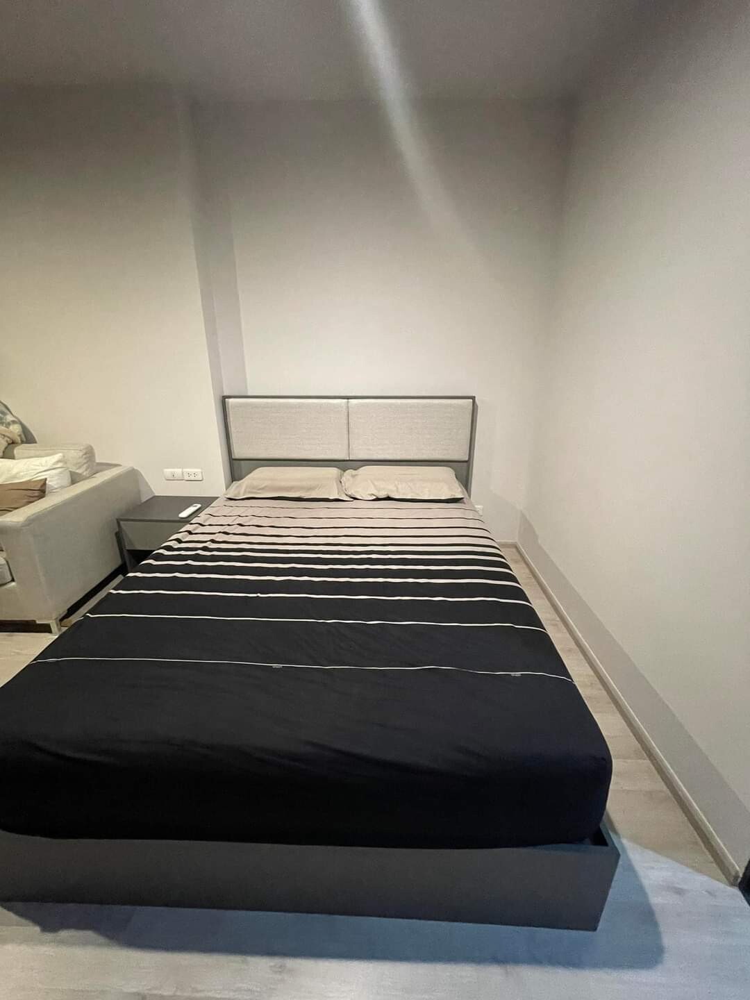 เฟอร์นิเจอร์ในห้อง : เตียง+ฟูก,โซฟา ,โต๊ะกระจก, ตู้เสื้อผ้า Built In 2 ตู้ + ชั้นวางของ + ชั้นวางรองเท้า Built In , ชั้นวางทีวี ,โต๊ะข้างเตียง