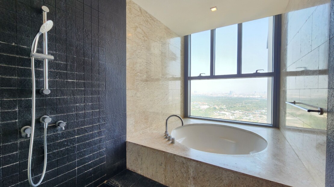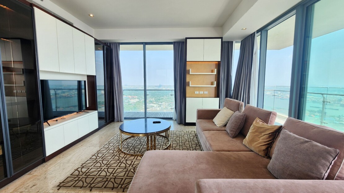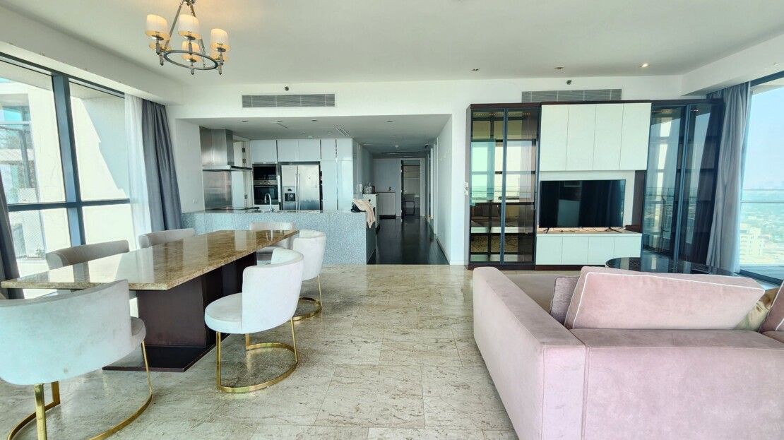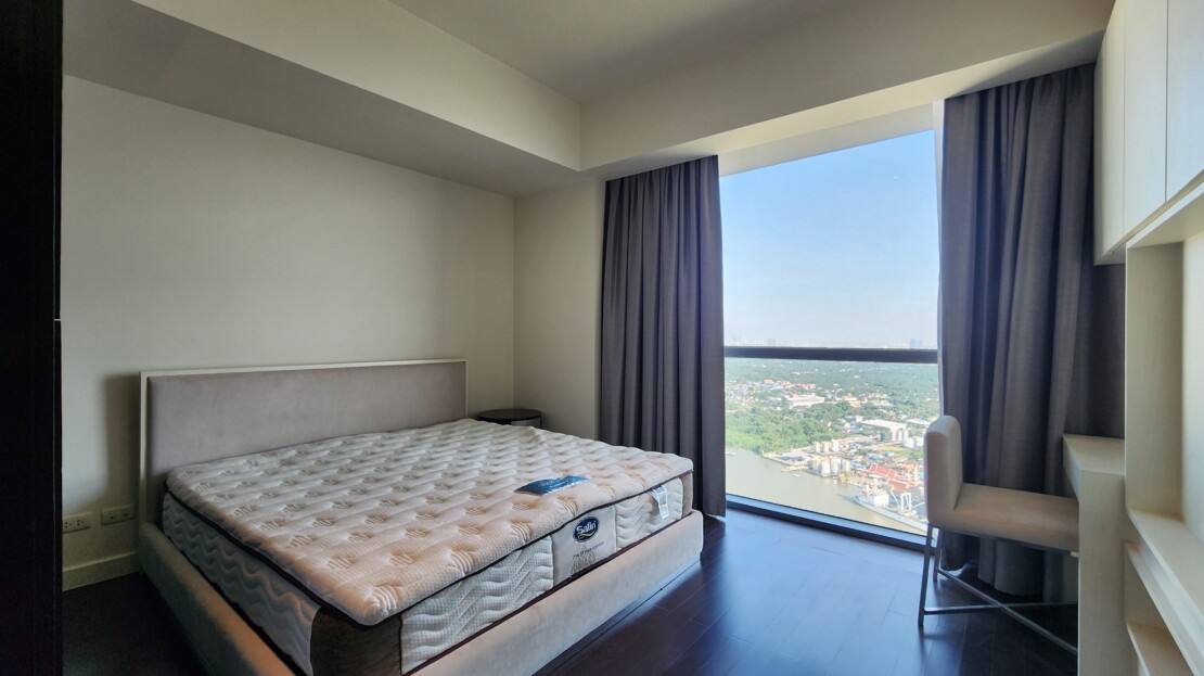 This 3 bedroom is set on high floor with spectacular river view and bridge on the eyesight level. Unlike in most buildings, you have more to enjoy with expansive 223 sqm living space. This unit comes with 2 kitchens, an open space of living room connected to the dining area, 3 bedrooms with ensuite bathrooms, maid quarter and washing area.