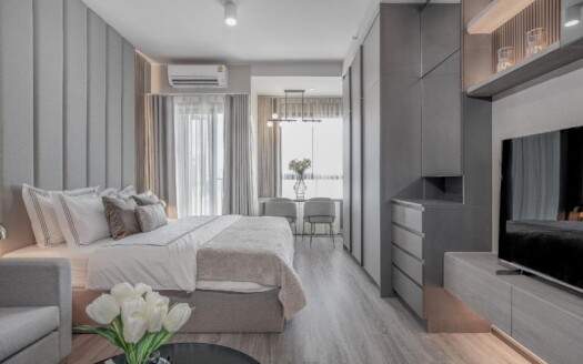 1 ห้องนอน พร้อมตู้เสื้อผ้า, โต๊ะเครื่องแป้ง, เตียง 5 ฟุต ฟูกเกรดโรงแรม 5 ดาว
