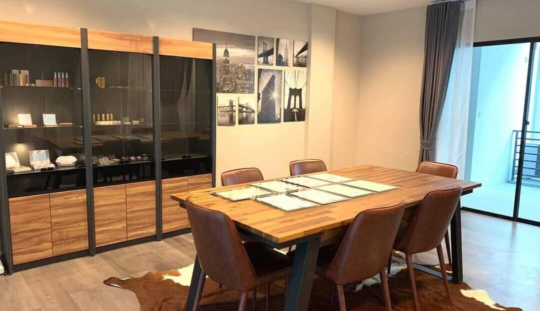 อุปกรณ์สำนักงาน: ชุดโซฟารับแขก, เคาท์เตอร์ต้อนรับ, โต๊ะประชุม, ตู้โชว์สินค้า, โต๊ะทำงานผู้บริหาร, โต๊ะทำงานพนักงาน 6 ชุด, ห้อง+ชั้นเก็บสินค้า, ห้องครัว, ห้องนอน, เตียง, ตู้เสื้อผ้า