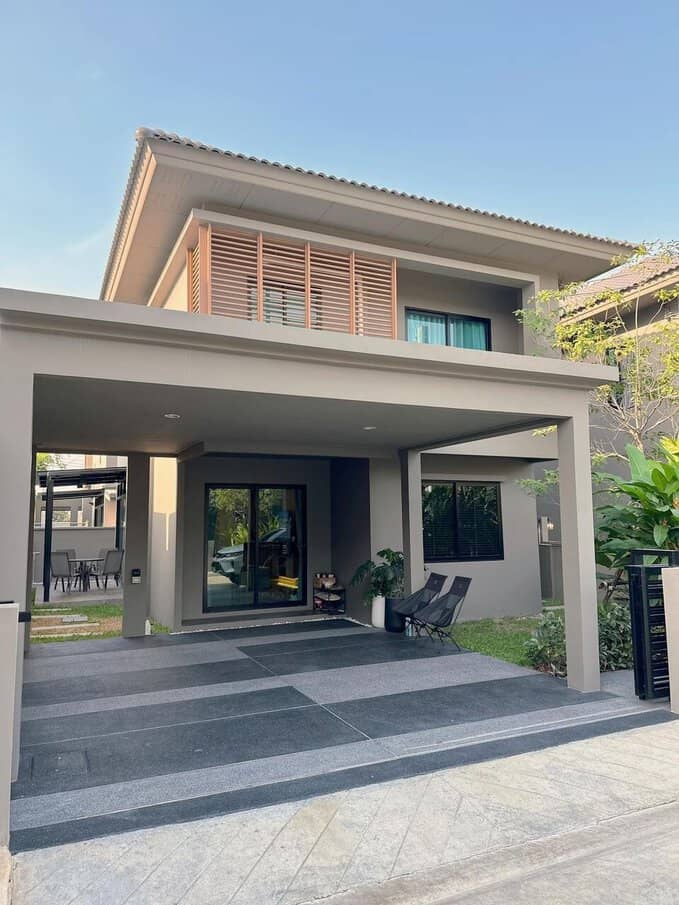 ✨ หน้าบ้านมีหลังคาจอดรถเรียบร้อย (มาตรฐานจากโครงการ)